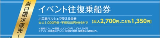 ※フェリー往復券の有効期限は、往路券は当日限り、復路券は1週間以内。