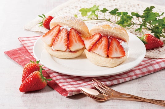 マリトッツオ風プチパンにホイップクリームを入れて、いちごをトッピングすればマリトッツオ風に!