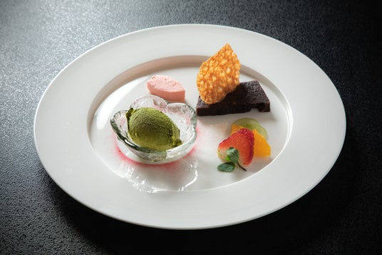 特製「チョコレートのテリーヌ」 桜のムース 抹茶アイスクリーム