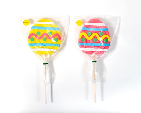 カラフルでパーティーにもぴったりな、顔の大きさほどのエッグロリポップ。インパクトのある贈り物を お探しの方におすすめです。エッグは職人の気まぐれで、ひとつひとつ柄や色が異なる手作りデザイン。全 て手作りなので、お気に入りのイースターエッグをぜひ店頭で見つけてください。