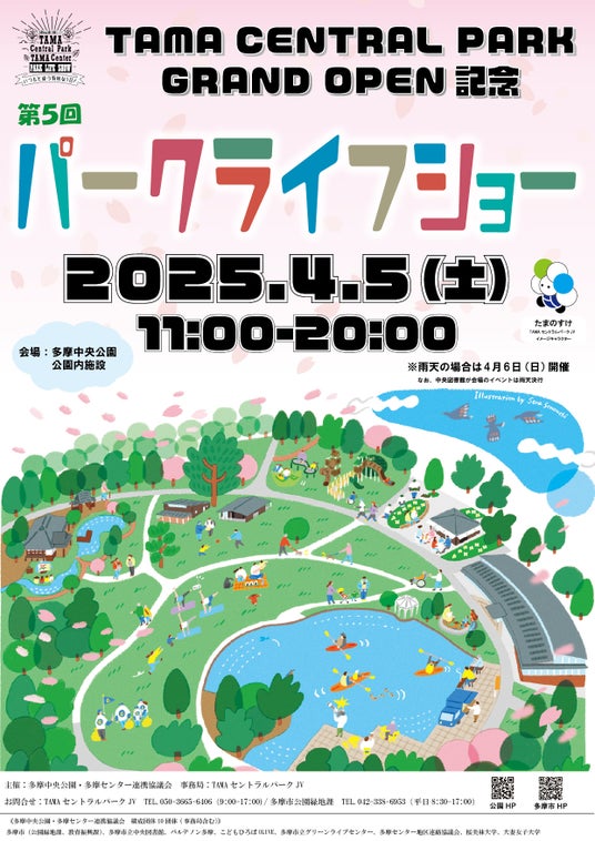 新たな施設やエリアも誕生した多摩中央公園にて、「公園の新しい日常がはじまる」をテーマに、グランドオープン記念イベント「第5回パークライフショー」を同時開催します。