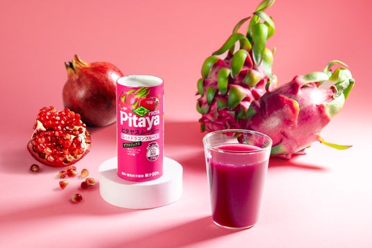 香料・着色料は使用せず、ピタヤとはちみつのやさしい甘さとザクロ由来の酸味が加わり、さわやかな味わいです。さらに、2つのフルーツ由来のポリフェノールで味わいに深みが加わりクセになる1本です。また、ピタヤの種を取り除いているため種特有の土臭さがなく、さらっとしたテクスチャーでシーンを問わずごくごく飲める1本です。
