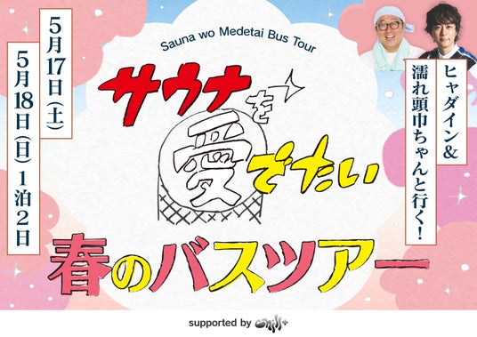 BS朝日『サウナを愛でたい』は、音楽業界きってのサウナー・ヒャダインと、「ととのった」の生みの親・サウナ界のレジェンド濡れ頭巾ちゃんが、日本全国のサウナ施設を巡り、壇蜜のナレーションと共に、その魅力を紹介するサウナ-に大人気の番組です。サウナやサウナめしを愛でる街ブラロケから、地域の方と深い絆が生まれ、番組を通して「サウナ(ツーリズム)で地域を元気にしたい」という番組の想いと『Chill+』の理念が重なり、テレビ局と旅行会社がコラボした『地域活性化プロジェクト』が始動します。この度第一弾のプロモーションとして、バスツアーの企画が実現しました。3月17日(月)22:30~22:54放送の番組内でご紹介予定です。