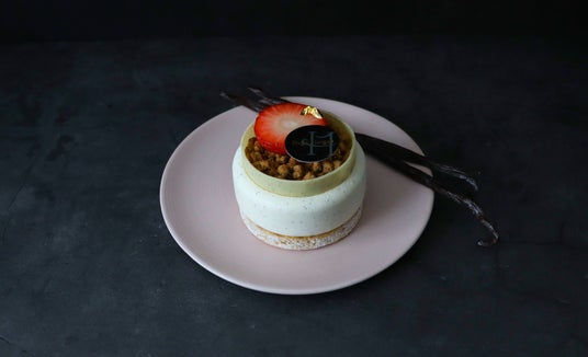 春の味覚・苺とフルーティーな香りが特徴のエクアドル産タヒテンシス品種のバニラが織りなす、軽やかな味わいのケーキ。バニラとともに煮込んだ果肉感残る苺のコンポテを、ヨーグルトを加えた軽やかなバニラムースで包み込みました。ヨーグルトの爽やかな酸味が、すっきりとした後味を引き立てます。土台には、しっとりとしたバニラ香るパンドジェーヌを敷き、サクサクとした食感のバニラクランブルを添えることで、ふんわりと軽やかな食べ心地に。