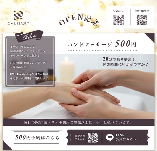 3月3日(月)よりスタートしたワンコインクイックハンドマッサージが大変好評です。