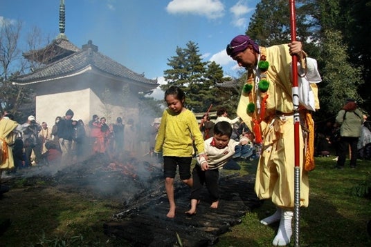 深い歴史を誇る鶴林寺の最大行事である、『聖徳太子会式(通称「お太子さん」)』が、聖徳太子の御命日法要(中日)を中心とした3日間にわたり開催されます。3月21日は春彼岸法要、22日は聖徳太子報恩法要があり、23日は大般若経転読法要の後、14時から大護摩が焚かれ、火渡りに参加できます