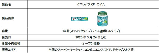 モンデリーズ・ジャパン株式会社(本社:東京都品川区 / 代表取締役社長:碇祐輔)は、息スッキリの「クロレッツ」ブランドから、過去に人気を博したライムフレーバーを再びお届けする「クロレッツXP ライム」を2025年3月24日(月)より全国で発売いたします。パリッと噛んだ瞬間に広がる爽やかなライムの香りと、さっぱりとした甘酸っぱさが楽しめるフレーバーです。クロレッツならではのスッキリ感はそのままに、ライムの清涼感を存分に堪能できる一品に仕上げました。