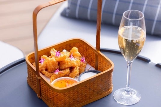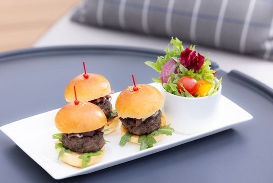 柔らかな近江牛のパテをダイナミックに味わう「CNBバーガー(クラウドネスト バーガー)」をはじめ、和牛のスライダーやチキンテンダーなどシャンパンやワインとベストマッチのオリジナルメニューが新登場。気軽に楽しめるスナック類とともにご賞味ください。