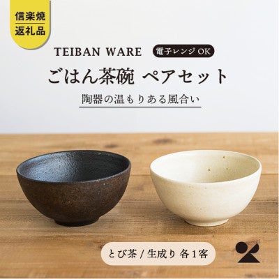 信楽焼・明山のごはん茶碗 とび茶生成りセット s18-wa12