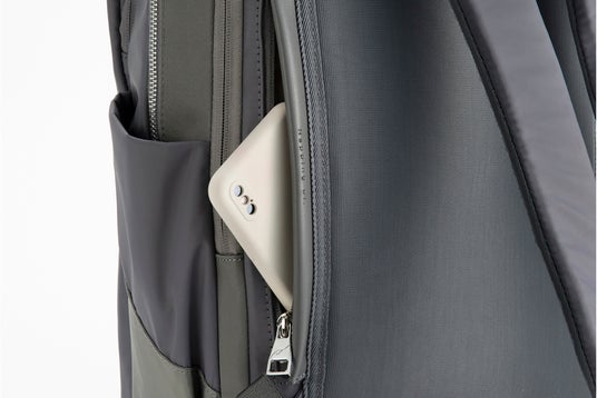 必要な収納力を備えた上で無駄なスペースを省くことにより、体に密着しやすいサイズ感を実現し、移動時の揺れを抑えます。