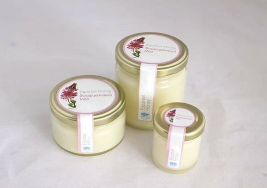 キルギス産の「白いハチミツ」は、キルギスの養蜂におなじみの牧草であるエスパルセットを90%以上含有しています。酪農国のキルギスでは、エスパルセットを羊や牛の飼料にしており、花が咲いている6月から7月にミツバチ達が飛び回り、ブドウ糖の豊富な蜜を集めてきます。この豊富なブドウ糖により、日本で一般的なハチミツとは異なる白さが実現しています。「白いハチミツ」は、スプーンですくうとトロっとしたねばりがあり、豊かな花の香りと濃厚な食感が特徴です。舌にのせるとザラっとした甘いつぶつぶが、口の温度で溶けていくのがクセになる美味しさです。香りは豊かですがその味はしつこくなく、スプーンですくってそのまま召し上がりになったり、お料理に混ぜたりしても味の邪魔をしない万能なハチミツです。