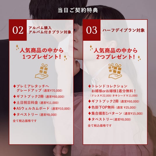 *洋装和装ライトプラン、エンゲージフォトプランは対象外