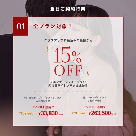 1・ はじめてのカウンセリング当日のご成約でプラン料金より15%OFF