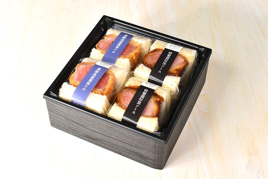 「ツバキ」は、人気No.1の濃厚な味わいの自家製黒ソースのヒレかつサンドと、さっぱりとした藻塩タレの人気の組み合わせBOX。