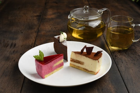 木の実と山菜の3つのケーキに加え、ホテルオリジナルの牧場野草茶がお楽しみいただけます。