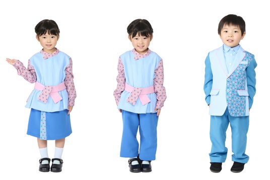 △左から女児スカート、女児パンツ、男児ユニフォームの一例(イメージ) (C)TOKYO-SKYTREE