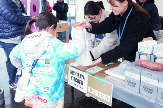 また、コラボ商品の発売を記念し、3月16日には「ニシキヤキッチンマッチデー」を開催。当日は悪天候にも関わらず、合計190食を先行販売(物販・飲食)し、来場者の皆様からは「選手の皆さんが関わった商品をいち早く食べることができて嬉しい。リピートします。」「甘くておいしい。寒い日にぴったりで心も身体も温まるポタージュ」と高評価をいただきました。