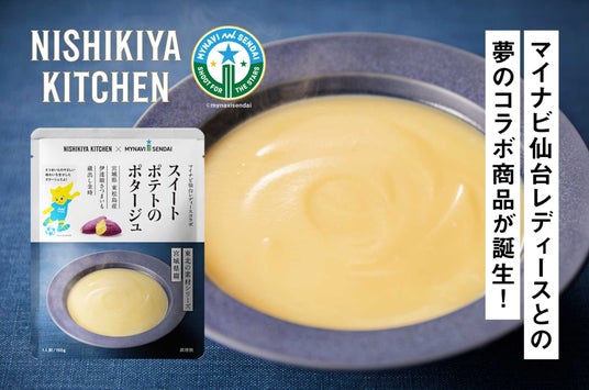 「世界の料理を『カンタン』に。」をコンセプトに掲げ、レトルトカレーを中心に販売するレトルト食品専門店NISHIKIYA KITCHEN(ニシキヤキッチン)(株式会社にしき食品 本社:宮城県岩沼市、代表取締役社長:菊池洋一)は、宮城の女子プロサッカーチーム「マイナビ仙台レディース」とのコラボ商品「スイートポテトのポタージュ」を3月21日より数量限定で販売します。