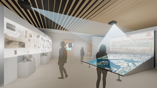 鉄道の発展によって暮らしに大きな変化を与えた駅をピックアップしたパネル展示や、高輪を起点にタイムスリップしながらまちづくりの歴史を紐解いていく「歴史ジオラマプロジェクションマッ