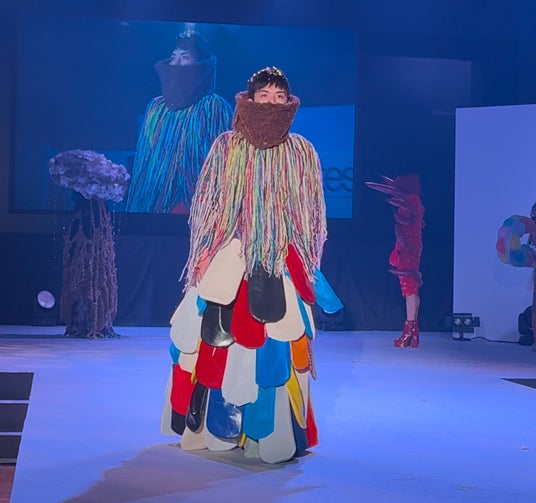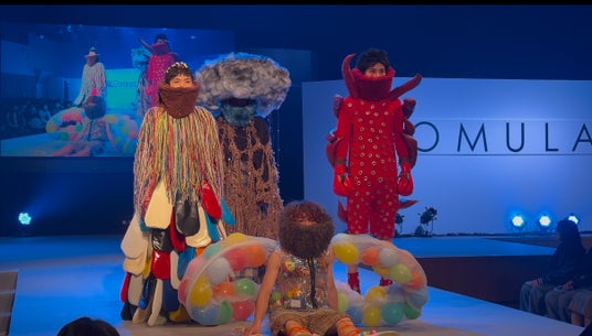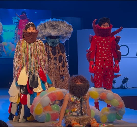 福岡県大村美容ファッション専門学校の学生による テントの端材をアップサイクルしたファッション 2025年2月22日 ファイナルコンテスト