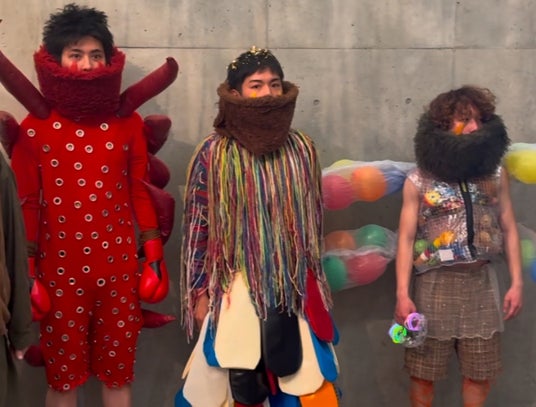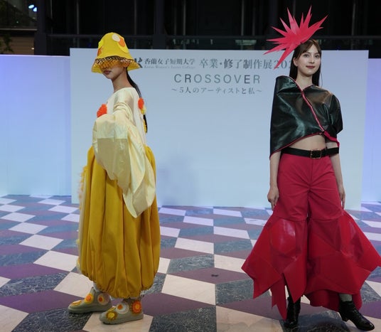 福岡県香蘭女子短期大学ファッション総合学科の学生による テントの端材をアップサイクルしたファッション 2025年2月16日 卒業修了制作展2025