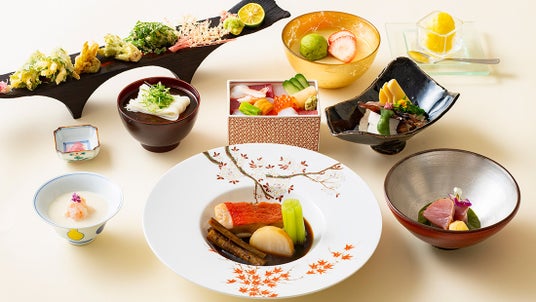 鯛、鮭、海老、帆立貝など旬の魚介を生かしたメニューをご用意しております。テラスダイニングミケーラ、レストランRPR、日本料理四季彩、中国料理彩湖、居酒屋赤松、天ぷら荒川にて旬の味覚をお楽しみください。