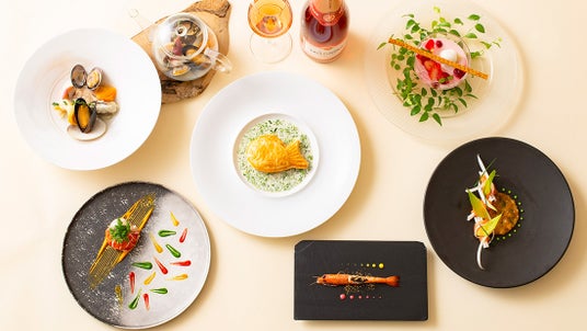 前菜からメインまで、旬の魚介類づくしの特別コース。真鯛やオマール海老、帆立貝などを多彩な調理法で春らしい華やかなフレンチに仕立てます。