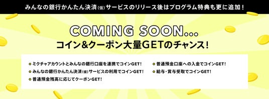 口座振替API連携による、お得かつ便利にコインを購入できる「みんなの銀行かんたん決済(仮)」サービスのリリース後は「ミクチャで推し活プログラム」特典もさらに追加予定です。
