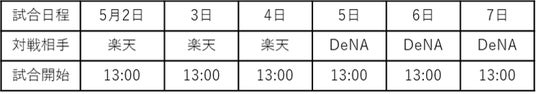 ※5月3日(土祝)~6日(火祝)は3階内野指定席です