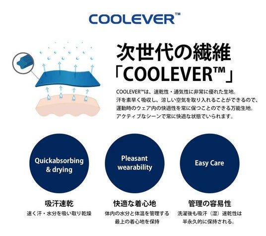 生地は速乾性・通気性に優れた「COOLEVER(TM)」を使用。