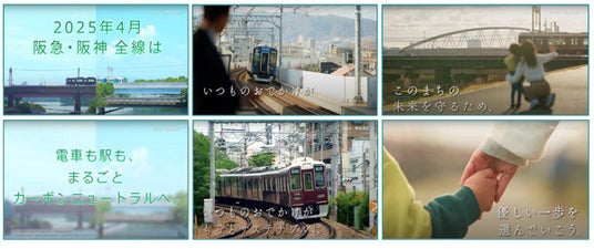 阪急電鉄株式会社(本社:大阪市北区、社長:嶋田泰夫)と阪神電気鉄道株式会社(本社:大阪市福島区、社長:久須勇介)は、脱炭素社会の実現に向けた取組として、2025年4月1日(火)から阪急・阪神全線の列車運行及び駅施設等で使用するすべての鉄道用電力を実質的に再生可能エネルギー由来の電力(再エネ電力)に置き換え、実質的にCO2排出量ゼロとする「カーボンニュートラル運行」を開始します。このたび、この「カーボンニュートラル運行」の開始にあわせて、同日から、そのイメージを車両にラッピングした列車を両社で運行することになりましたのでお知らせします。