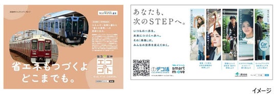 車内のすべての広告スペースを使って、阪急阪神ホールディングスグループ各社の環境保全の推進に関連した取組や環境省が進める「デコ活」を紹介します。