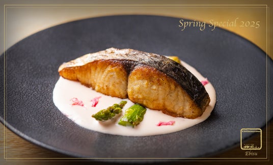 ローストビーフの店 鎌倉山 恵比寿店では、春の季節感あふれる特別コースをご用意いたしました。春の息吹を感じる旬の食材を贅沢に取り入れた特別コース。桜の香り漂う鰆、旬の稚鮎と筍、そして鎌倉山自慢のローストビーフ。美しく華やかな一皿一皿が、春の訪れを五感でお愉しみください。