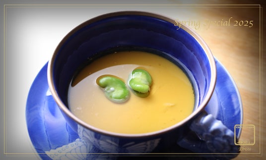 - そら豆の優しい甘さと出汁の香り、春を閉じ込めた一杯。-