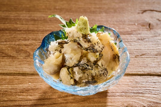 【つんつんつぶ貝】つぶ貝のコリコリ食感と濃厚な旨みを楽しめる逸品。わさびがアクセントになり、お酒との相性も抜群!