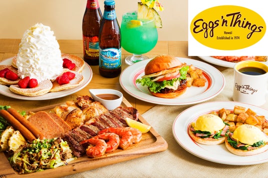 Eggs ‘n Things は 1974 年にハワイで誕生しました。“All Day Breakfast”の朝食を中心に、カフェメニューからハワイを感じられるロコフード、本格的なアメリカンメニューまで、幅広くお食事をお楽しみいただけます。心地よく穏やかな雰囲気の中で、ハワイらしい温かなおもてなしとともに、特別なお時間をお過ごしください。
