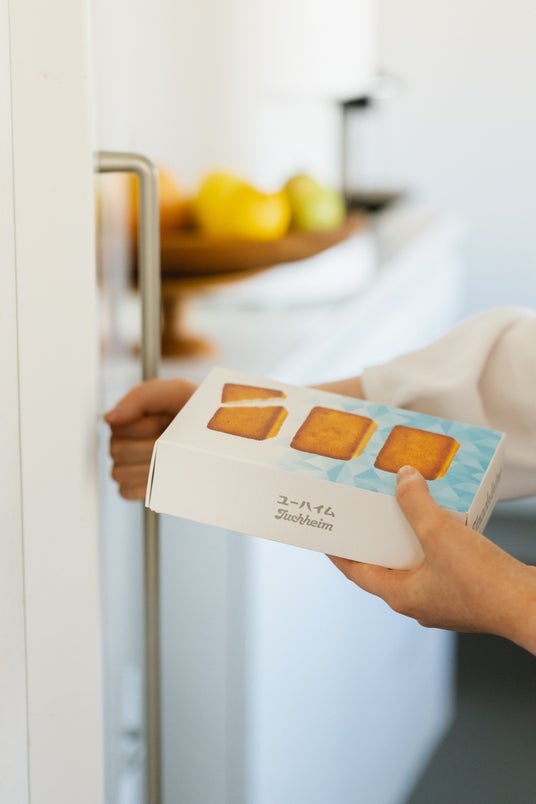 冷やすことによって、常温の状態から一番変化するポイントは“食感”です。そのまま常温で食べると、ふんわり口の中でとろけるような“ふわふわ”食感が楽しめます。一方で、冷凍庫で冷やすとひんやり“もちもち”な新しい食感の焼菓子になります。これも冷やすことを考えて作られているレシピだからこその食感の変化です。おすすめの冷やし方は冷凍庫に5時間、個包装のまま入れて冷やすことです。