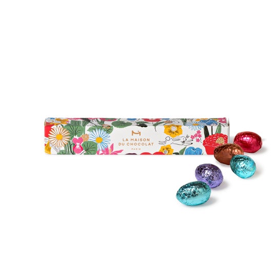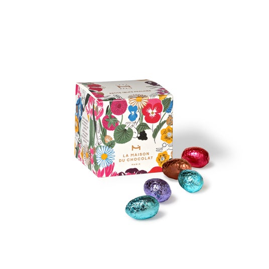 内 容:カラフルな4⾊のアルミ紙に包まれ、色ごとに異なる4種の味わいをお楽しみいただける小さなタマゴ型のプラリネ。