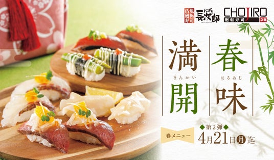 株式会社フーズネット(本社・大阪府大阪市、代表取締役社長・加藤誠)が運営する「活⿂廻転寿司にぎり長次郎」 「廻転寿司CHOJIRO京都」は、2025年3月18日(火)から2025年4月21日(月)まで、春メニュー第2弾を販売いたします第2弾では、「春味満開(はるあじまんかい)」と題して「藁(わら)焼きかつお」や「桜鯛(さくらだい)」など、期間限定のネタを入荷いたします。期間中『春の感謝祭』を同時開催しております。この季節ならではの味わいを、心ゆくまでお楽しみください。