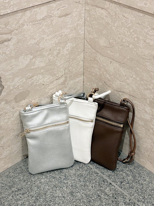スマートフォンやカード類、リップなどが入るコンパクトなサイズ感で、ちょっとしたお出かけにぴったりのアイテム。オフホワイト・ダークブラウン・シルバーからお好みのカラーをお選びいただけます。