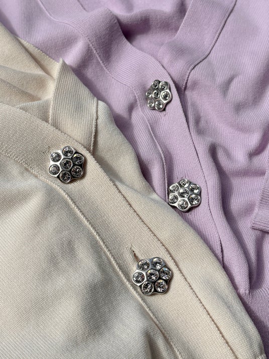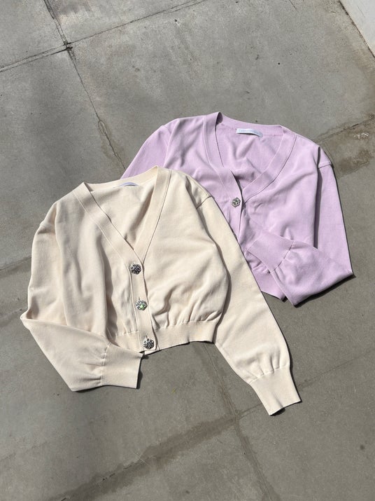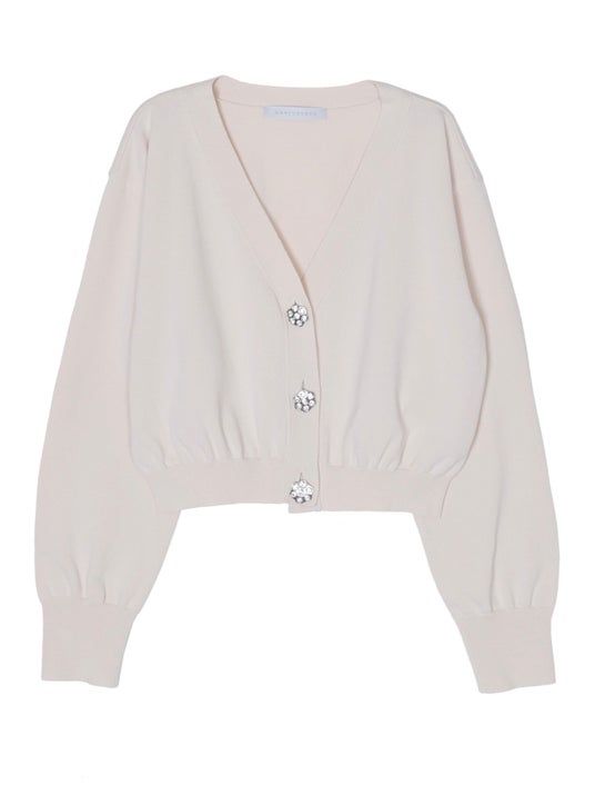 27,500円(税込)以上お買い上げのお客様に、ビジューボタンVネックカーディガンをプレゼント。ワンピースの上にさらっと羽織ってカーディガンとして、またはキャミソールに重ねてトップスとしてもご着用いただける、春先に活躍するこだわりのアイテムです。アイボリー・ピンクからお好みのカラーをお選びいただけます。