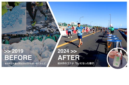 「湘南国際マラソン」は“子供たちのために、地域のために、地球環境のために”、2022年に世界で初めてコース上の使い捨てカップ・ペットボトル排出ゼロを実現した「マイボトルマラソン」です。