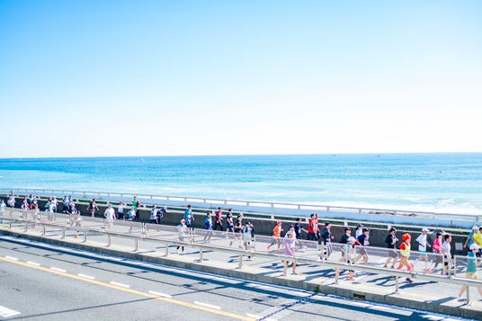 本大会の魅力はなんといっても富士山を眺めながら海沿いを走る絶景のコース。コース中に横切る江の島をはじめ、鎌倉、横浜など。アクセスが良く有名な観光地が隣接しています。