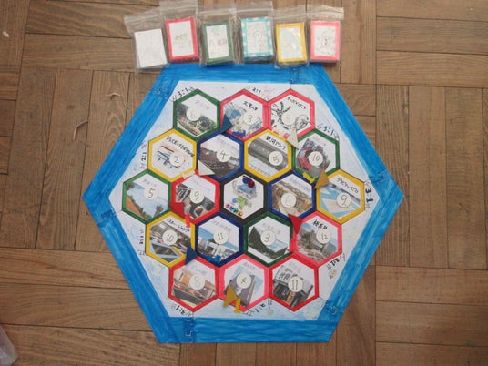 世界中のボードゲームの中でも3000万個以上の記録的な販売数を誇り、ボードゲームの帝王とも呼ばれる「カタン」(カタンの開拓者)。小学生でも楽しめるほどカンタンなのに奥が深く、大人もハマるこのゲームのオリジナル版を、相模原市立淵野辺小学校6年3組のみなさんが株式会社ジーピーの協力を得て、楽しみながらわがまちを知ることができる「地元カタン」として1年間をかけて手作りしました。