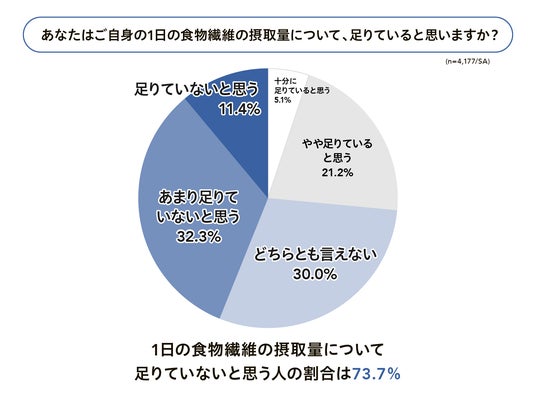 1日の食物繊維の摂取量について「足りていないと思う」と回答した人の割合は73.7%。