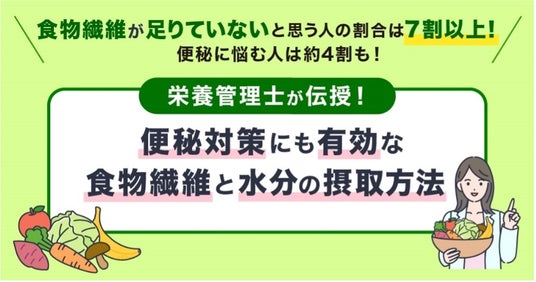食事摂取基準(2025年版)で食物繊維がより重要視!1日25g以上の摂取が望ましいことを知らない人の割合は87.9%。7割以上が「食物繊維が足りていない」と回答、約4割が便秘で悩んでいる結果に。