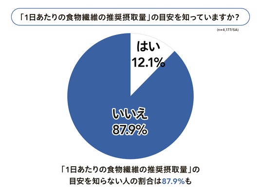 ・また1日あたりの食物繊維の推奨摂取量の目安を知らない人の割合は87.9%。