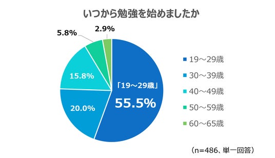●勉強を始めた時期 「20代まで」が過半数、40歳以上で始めた人も一定数