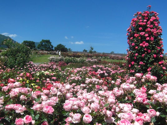 350種、1500株の高原に咲く春のバラは薫り高く、色鮮やか。特別な気分にさせてくれます。