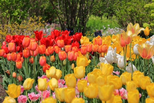 5色、3万株のチューリップが時期を変えながら咲き誇ります。久住ガーデンには原種チューリップも。